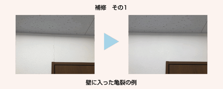 壁紙の破れや亀裂、ひび割れなども本塗装に入る前にきれいにならし補修します。