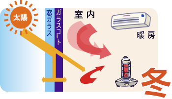 暖かい“遠赤外線”の流出を防ぎ暖房の熱をそのまま保ちます。