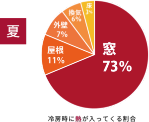 一年を通じて、お部屋の温度は窓からの影響を大きく受けています。