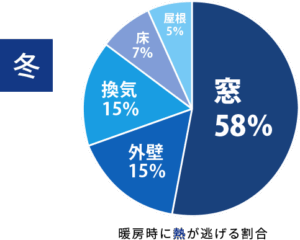 せっかく暖められた空気は窓から漏れ出してしまいます。